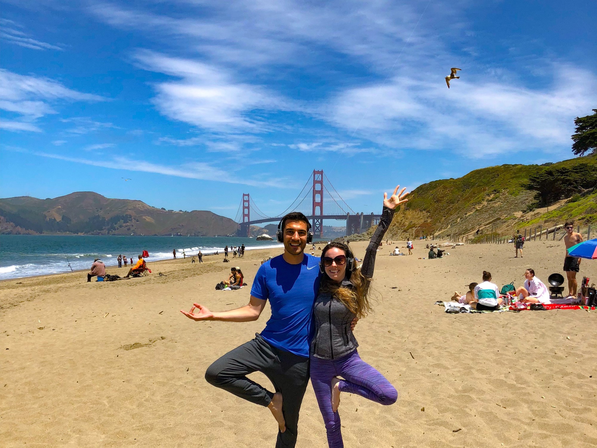 Mike and I went to Baker Beach to participate in Silent Disco beach yoga with Outdoor Yoga SF, and it was so much fun! A really awesome Bay area teacher guided us through a 75-minute experience of yoga, zen beats, dance, and the beach vibes. We played in the water, pranced around, and listened to some really great songs. I would highly recommend anyone of any age or any yoga experience (or no experience) to check this out! It was so much fun! We really lucked out with weather because it started as overcast, but then it became a really nice day!
